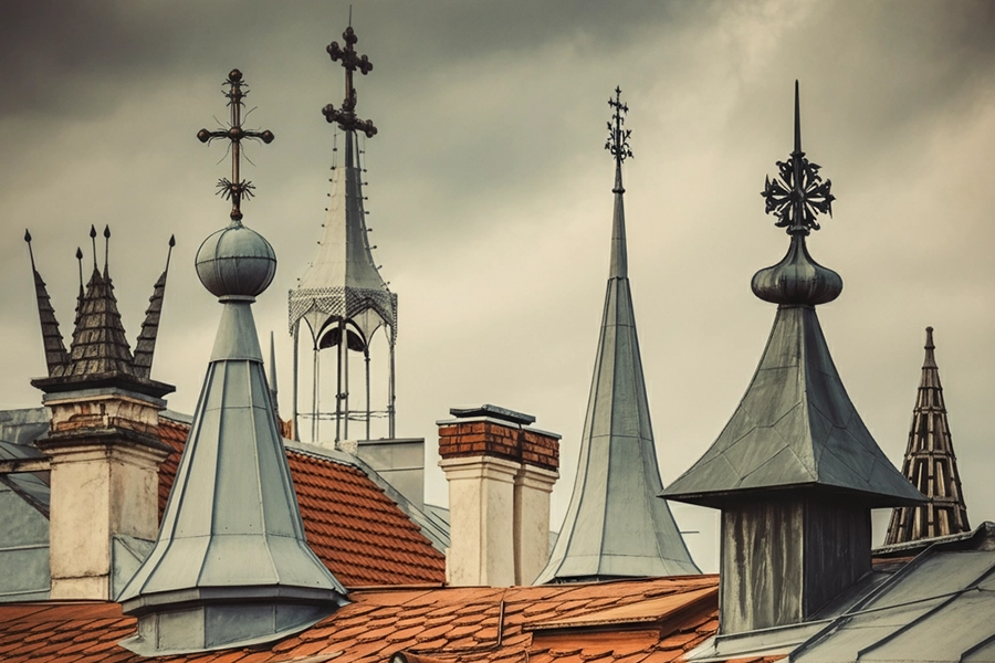 Ob klassische Turmkronen, Sakralspitzen oder moderne Dachverzierungen – wir unterstützen Sie bei der Auswahl aus umfangreichen Kollektionen oder beraten bei der Übernahme bereits restaurierter Bauteile. Besonders für denkmalgeschützte Gebäude achten wir auf Authentizität und sichere Integration.