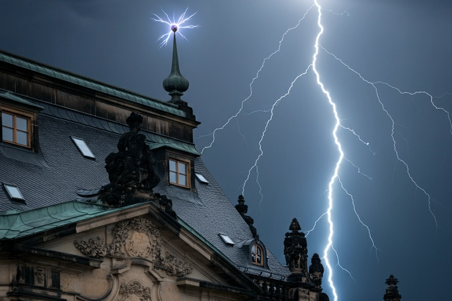 Die Blitzschutzanlagenbau Richard Müller GmbH ist Ihr verlässlicher Ansprechpartner für die Auswahl und Montage von Dachbekrönungen in Dresden, Leipzig, Chemnitz und ganz Sachsen. Wir verbinden funktionalen Blitzschutz mit dekorativen Elementen und beraten Sie individuell – unter Berücksichtigung der Architektur, Denkmalschutzanforderungen und regionaler Besonderheiten.