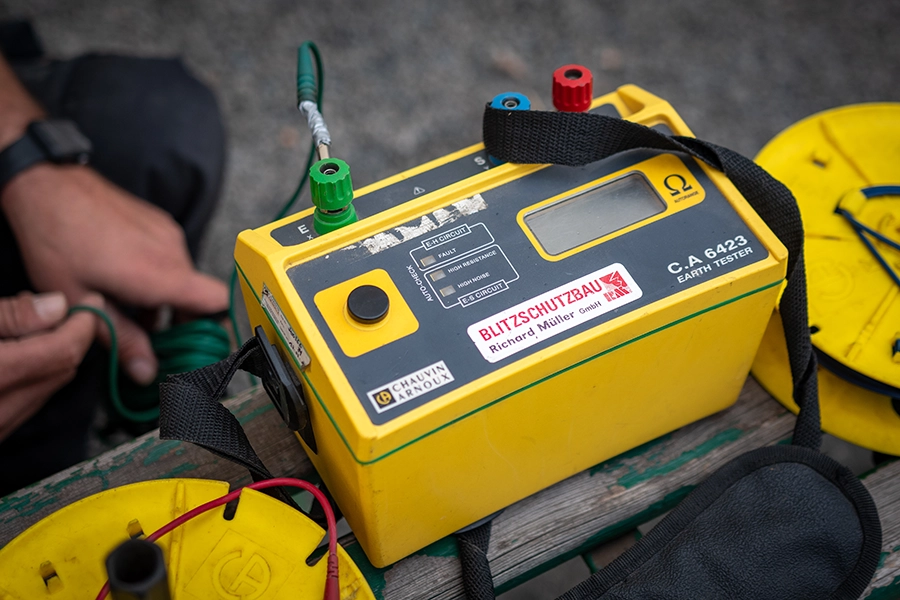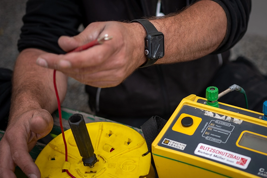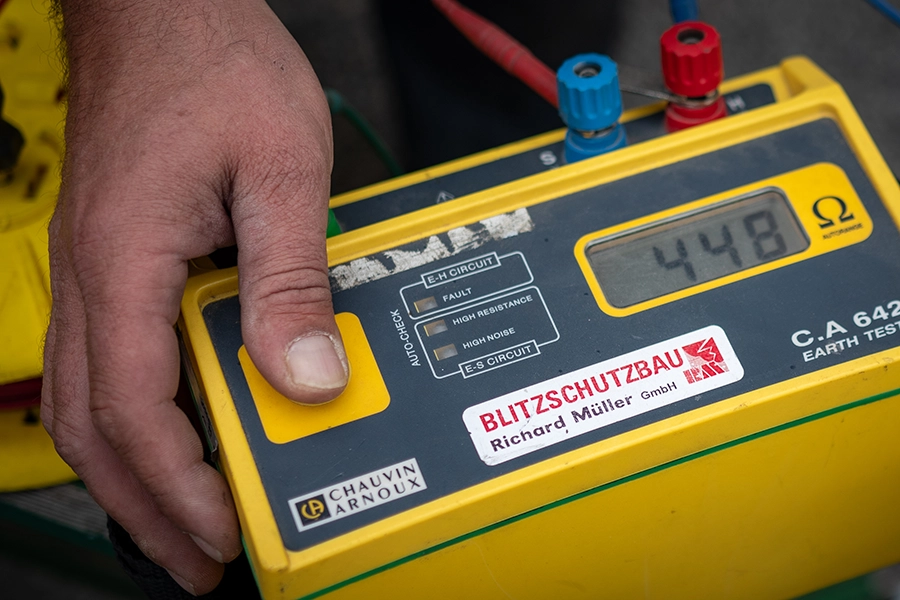 Die Erdungsanlage ist ein zentraler Teil jedes Blitzschutzsystems. Bei der Prüfung werden die Widerstände gemessen und die mechanische Verbindung aller Bauteile kontrolliert.